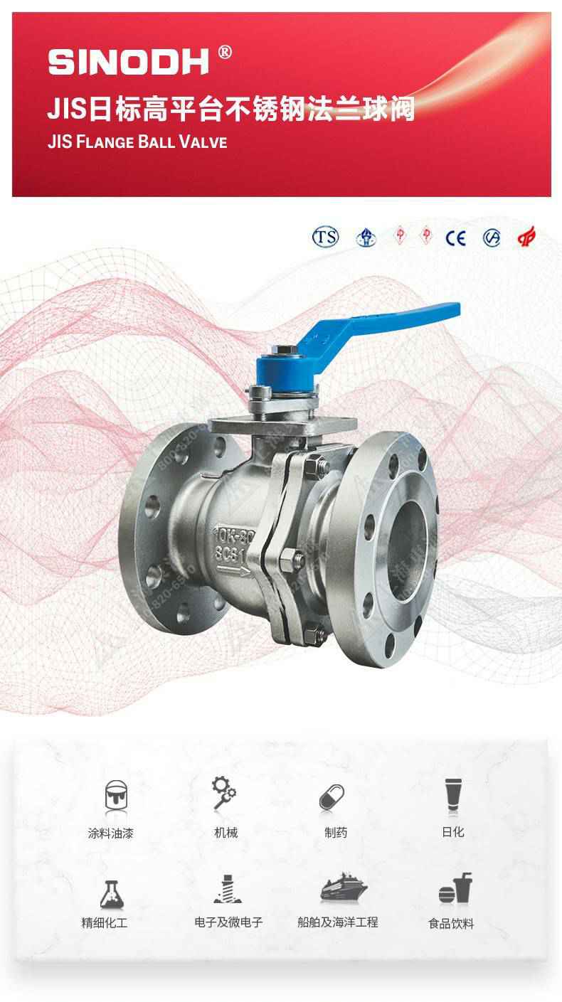 JIS日标高平台不锈钢法兰球阀,为星空网页版登录页面入口-星空online(中国)自主研发生产本产品设计制造标准符合J1 SB2071标准,该产品的球体(密封件)是浮动的,在介质压力作用下,球体能产生-定的位移并紧压在出口端的密封面上,保证出口端密封。适用于水、溶剂、酸和天然气等一般工业介质,也适用于工况恶劣的介质,如氧气、过氧化氢、乙烯等介质。