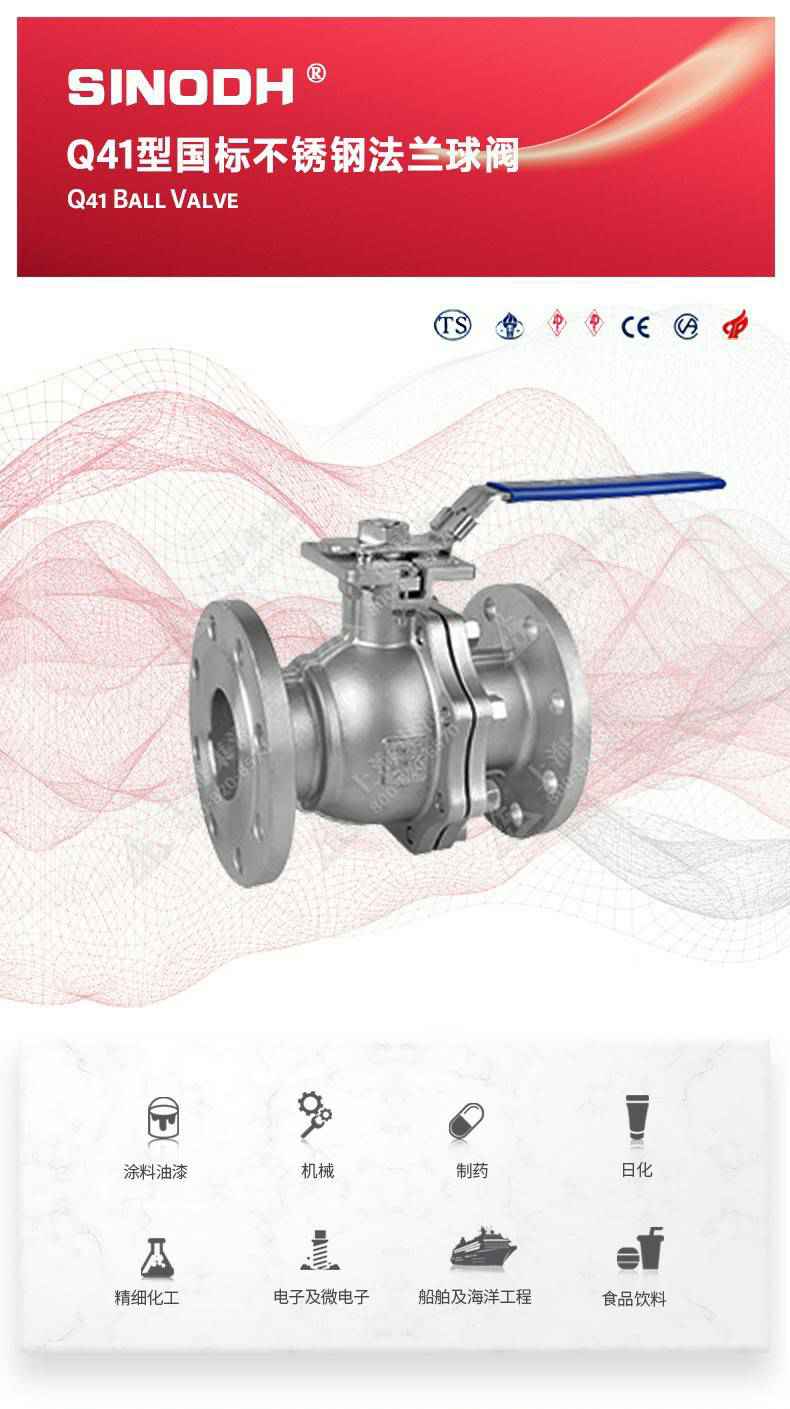 Q41型国标不锈钢法兰球阀,为星空网页版登录页面入口-星空online(中国)自主研发生产。本产品设计制造标准符合GB/T12237、GB/T 1 2224标准该产品的球体在介质压力作用下,球体能产生-定的位移并紧压在出口端的密封面上,保证出口端密封。适用于水、溶剂、酸和天然气等-般工业介质,也适用于工况恶劣的介质,如氧气、过氧化氢、甲烷和乙烯等介质。