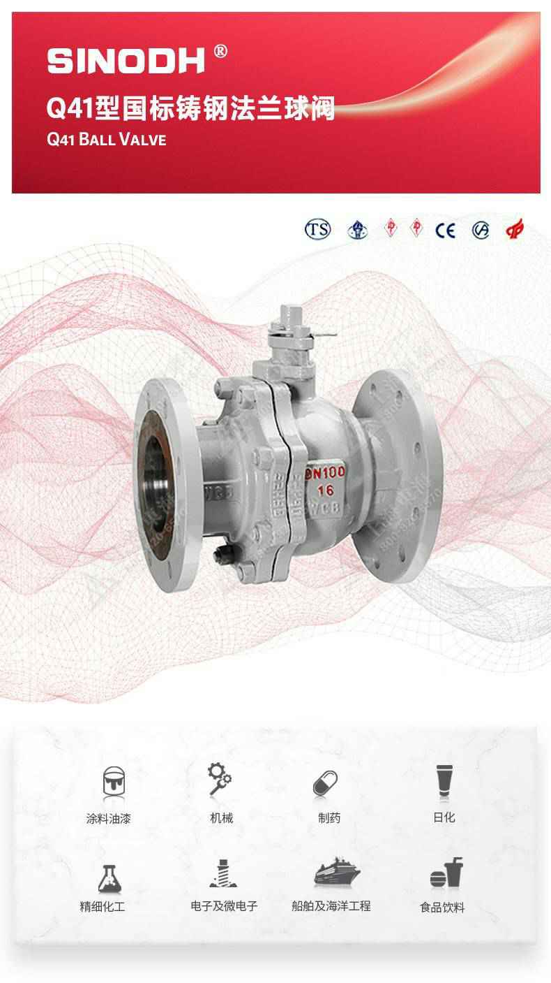 Q41型国标铸钢法兰球阀,为星空网页版登录页面入口-星空online(中国)自主研发生产。本产品设计制造标准符合GB/T12237、GB/T12224标准。该产品的球体在介质压力作用下球体能产生一定的位移并紧压在出口端的密封面上,保证出口端密封。适用于水、溶剂、酸和天然气等一般工业介质也适用于工况恶劣的介质,如氧气、过氧化氢、甲烷和乙烯等介质。